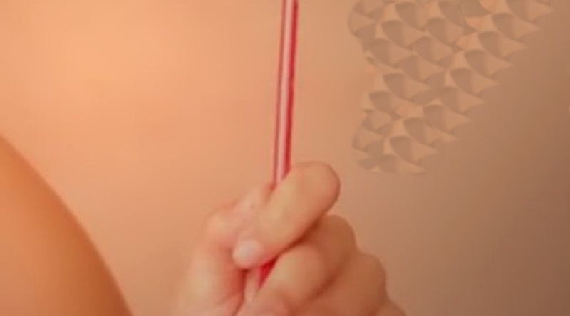 2. Collez les pailles latéralement sur les parois en verre du récipient.