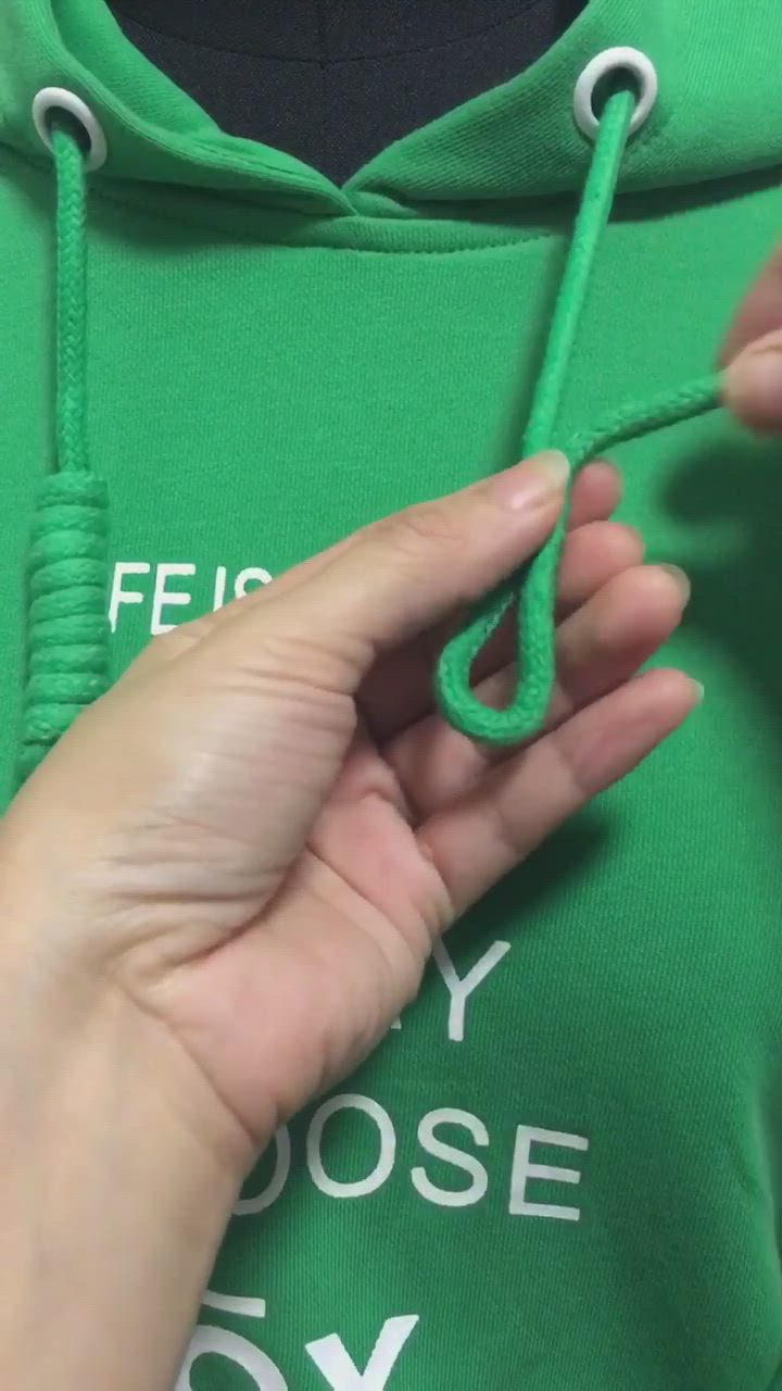 Les lacets noués en forme de petit arbre peuvent devenir une décoration originale d'un sweat-shirt. Pour ça: