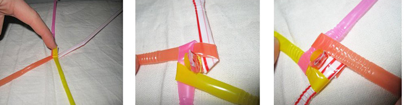 Pour une base ronde, vous devez utiliser au moins 4 tubes, puis tresser simplement la base en cercle. Les débutants doivent soigneusement et étroitement les uns aux autres faire les rangées suivantes.