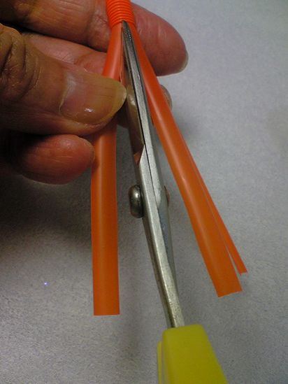 • Il faut couper le tube en formant une frange. Il est préférable de le faire du début de l'élément au pli. Redressez légèrement la pièce résultante.