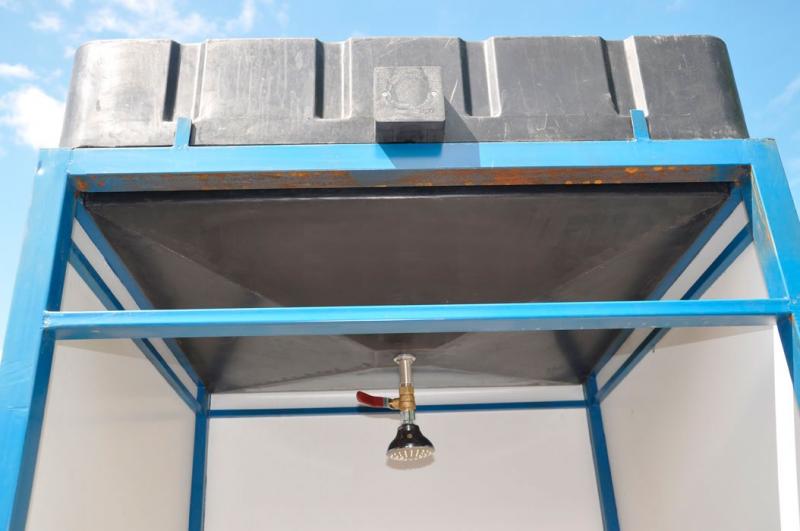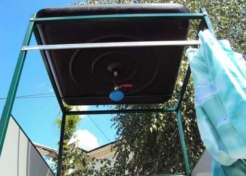Les réservoirs carrés plats sont également bons car ils peuvent également servir de toit pour une douche d'été. Ensuite, les dimensions du cadre doivent être légèrement inférieures aux dimensions du conteneur - afin qu'il s'adapte parfaitement au support. C'est ainsi que vous pouvez choisir la taille du réservoir de douche - construisez d'abord un cadre et cherchez un récipient en dessous. Mais vous pouvez faire le contraire - acheter un conteneur et construire la structure elle-même en fonction de ses dimensions. Bien que personne n'interfère, faites un toit et placez-y un conteneur comme vous le souhaitez.