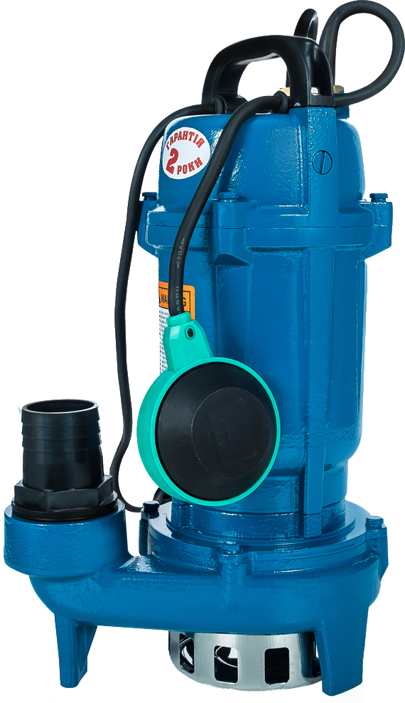 Pompe fécale submersible avec moteur centrifuge, conçue pour pomper de l'eau sale et fortement polluée avec des solides jusqu'à 27 mm, des matières fécales. Le moteur électrique est équipé d'un système de protection contre la surchauffe intégré sous la forme d'un protecteur thermique. De plus, il est refroidi par le liquide pompé. L'interrupteur à flotteur élimine le fonctionnement à sec. Malgré la faible puissance, le débit atteint 9 m3/h, la hauteur manométrique maximale est de 7,5 m.