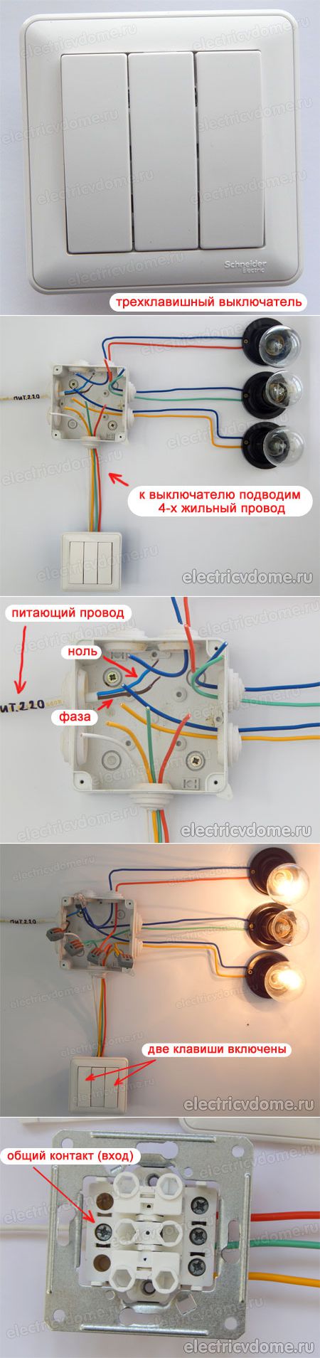 Les principales étapes d'installation et de raccordement d'un interrupteur triple: