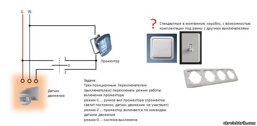 Il est nécessaire de déterminer à l'avance le degré de charge de travail et les tâches principales de l'appareil. Parfois, il est plus pratique d'acheter un détecteur de mouvement séparé et branchez-le avec un interrupteur. Les deux appareils peuvent être séparés à l'intérieur, mais ils fonctionneront par paires. Cette option est bonne si l'emplacement de l'interrupteur ne vous permet pas de contrôler la section la plus critique de la pièce, du couloir ou d'une autre zone.