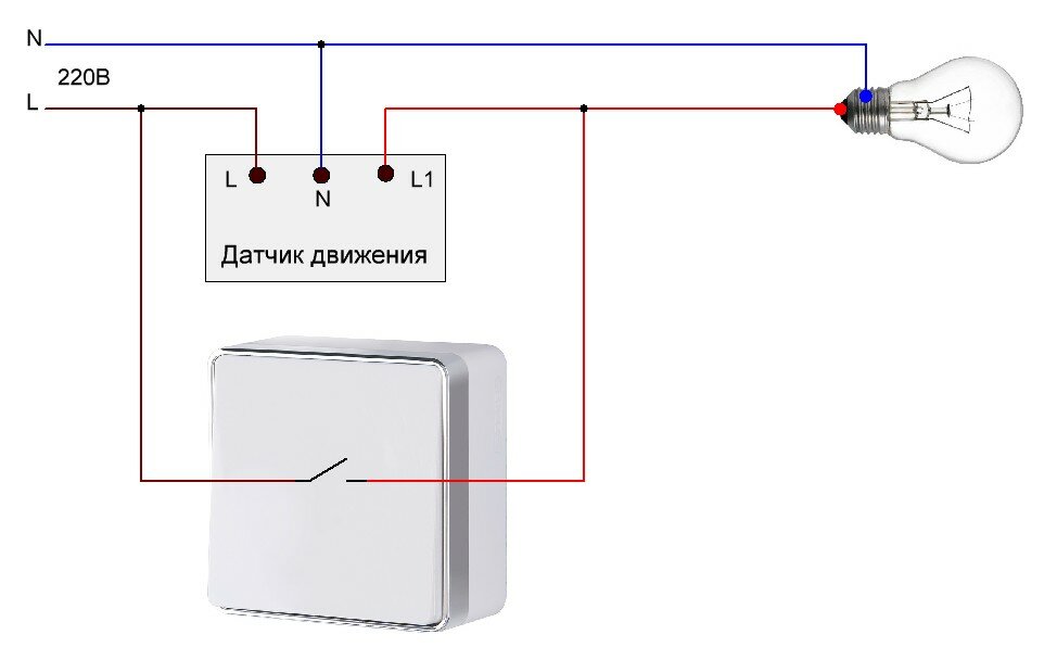 Parfois, un capteur de mouvement séparé est acheté, qui est connecté au commutateur.