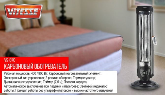 Le désir du consommateur d'acheter un appareil de chauffage qui ne dessèche pas l'air, ne chauffe pas bien, utilise le minimum d'énergie est réalisable. Ces exigences peuvent être satisfaites par un réchauffeur de carbone. La base de l'appareil est un élément chauffant en carbone.