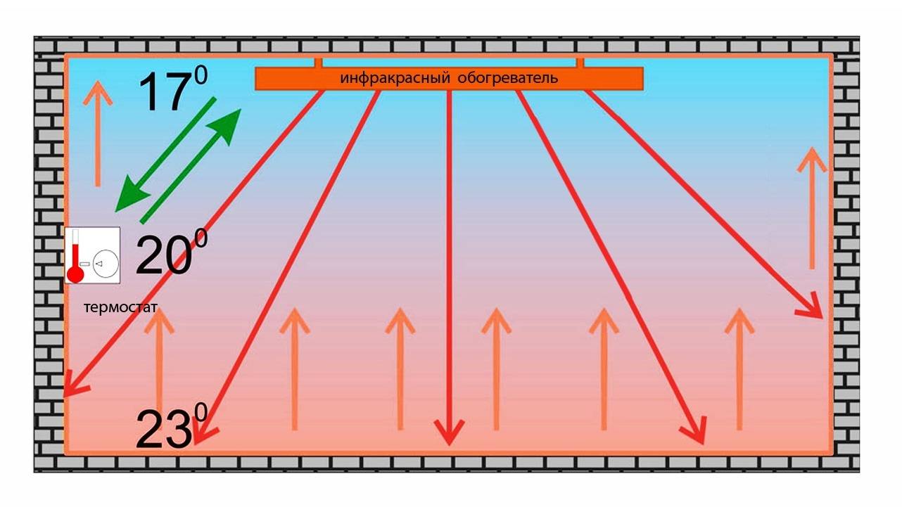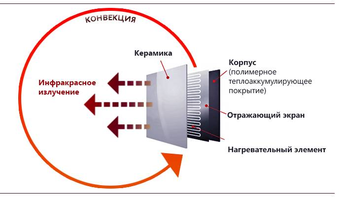 Comme mentionné ci-dessus, ces appareils électroménagers sont radicalement différents des appareils de chauffage à convection. Ils ne chauffent pas l'air, mais les objets environnants dans la pièce : meubles, appareils électroménagers, sols et murs. Les appareils infrarouges peuvent être appelés un petit soleil domestique, dont les rayons pénètrent dans l'air sans le chauffer du tout. Seuls les objets qui ne transmettent pas de lumière s'échauffent sous l'influence de ce rayonnement et transfèrent de la chaleur à l'air ambiant, le chauffant à la température requise.