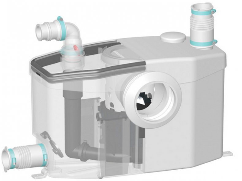 L'équipement est installé sous le point de vidange du réseau d'égouts. Le poids de ce modèle Sololift pour évier, bidet et douche est de 3,5 kg. La pompe est capable de pomper du liquide jusqu'à 60 l / min et la hauteur de refoulement maximale est de 5,5 m.