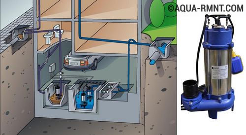 3. Toute la plomberie est située au-dessus du sous-sol. Il est nécessaire d'organiser un système de pression. Pour de telles conditions, les pompes submersibles avec broyeur intégré sont excellentes. L'appareil Grundfos SEG est capable de soulever de l'eau à une profondeur de 10 m, avec une capacité de 18 mètres cubes. m/h