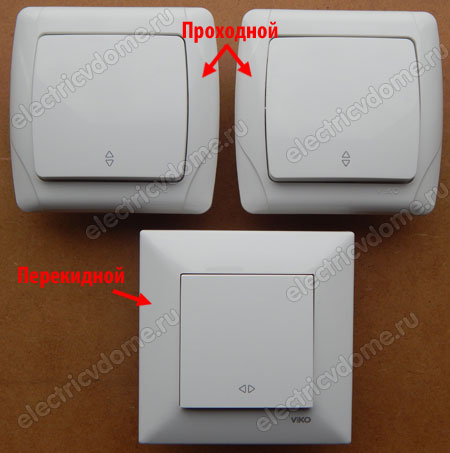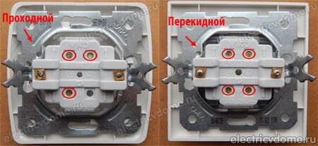 Comme les interrupteurs à deux boutons, le circuit d'interrupteur traversant a trois contacts. Cependant, ce contact supplémentaire a une fonction complètement différente. Lorsqu'un interrupteur classique est actionné, une simple coupure de circuit se produit. Un interrupteur double, ouvrant un circuit, en ferme simultanément un autre, qui, à son tour, est les contacts d'un interrupteur à paire (ces appareils ne sont pas utilisés individuellement).