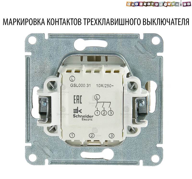 Également dans le marquage des interrupteurs, il y a des désignations de bornes :
