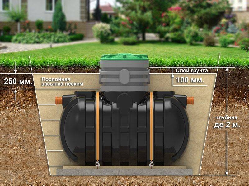 L'industrie propose différents modèles de fosses septiques pour les chalets d'été sans pompage sous la forme de systèmes miniatures et à part entière.