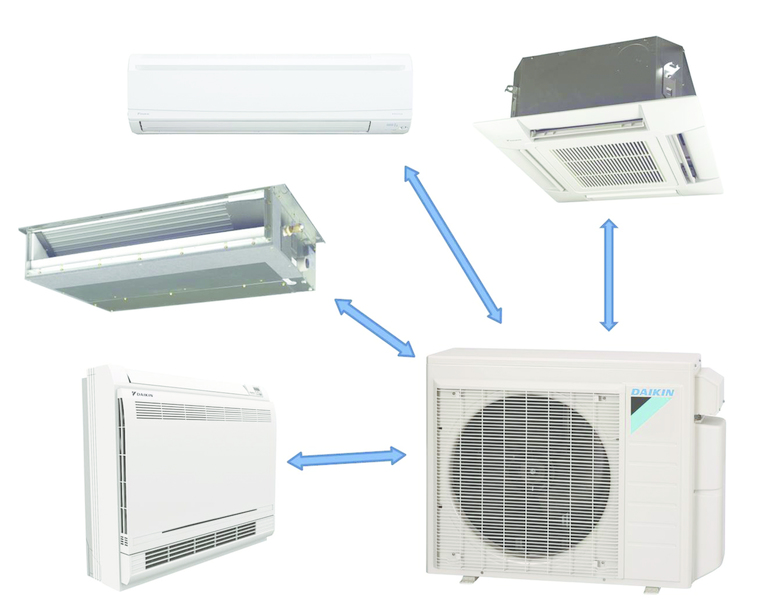 Les multisystèmes peuvent avoir plusieurs unités intérieures avec 1 unité extérieure. Le nombre maximum d'appareils internes est de 16. Ces modèles conviennent aux grands appartements multi-pièces. Souvent, ils sont installés dans des bureaux. Équiper un système de refroidissement par air à l'aide d'une enceinte extérieure est avantageux car les coûts financiers et de main-d'œuvre de l'installation sont réduits.