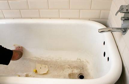 Dans la production de bains en acier et en fonte bon marché, ils économisent également sur l'émail. L'émail fin est très fragile, même lorsque des objets relativement légers tombent, des éclats peuvent se former dessus.