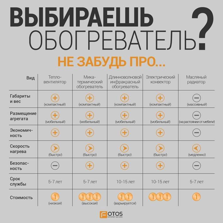 Lors de l'achat d'un appareil de chauffage, vous devez prendre en compte les caractéristiques de la pièce dans laquelle il fonctionnera, son mode de fonctionnement.