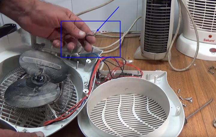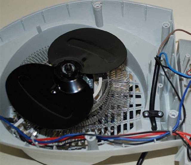 Le radiateur soufflant n'est pas non plus difficile. Ici, la source de chaleur est une spirale chaude ou de fines plaques métalliques.