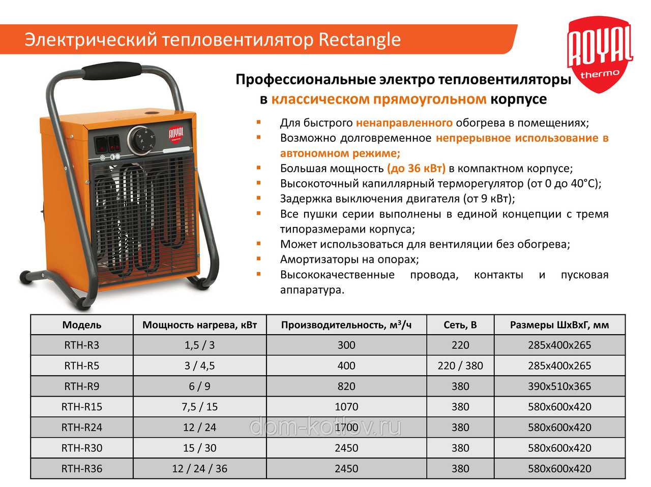 Les appareils portables présentent également de nombreux avantages. Ils sont compacts, légers, faciles à installer et à transporter. Il convient de noter que ces aérothermes sont très budgétaires par rapport aux modèles fixes. Une telle unité peut être installée en toute sécurité pour chauffer une petite pièce, sur le lieu de travail et même utiliser pour chauffer les serres dans la période printemps-automne.