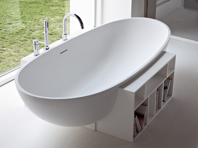 - la possibilité d'une variété de modèles moulés teintés. Les baignoires en pierre solide ont une couleur et un motif uniques ;