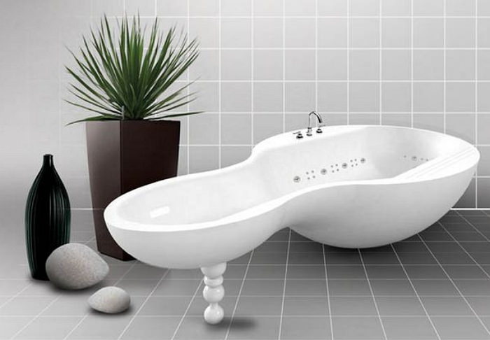 Baignoires sur mesure. Ce sont divers délices de conception qui ne peuvent être attribués à aucun des types habituels: formes polygonales et autres formes libres. L'achat et l'installation de tels modèles sont généralement planifiés avec l'architecte d'intérieur.