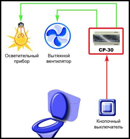 Quelqu'un considère l'option la plus pratique pour installer un interrupteur sur la hotte directement à l'intérieur de la salle de bain. Cependant, le PUE l'interdit.