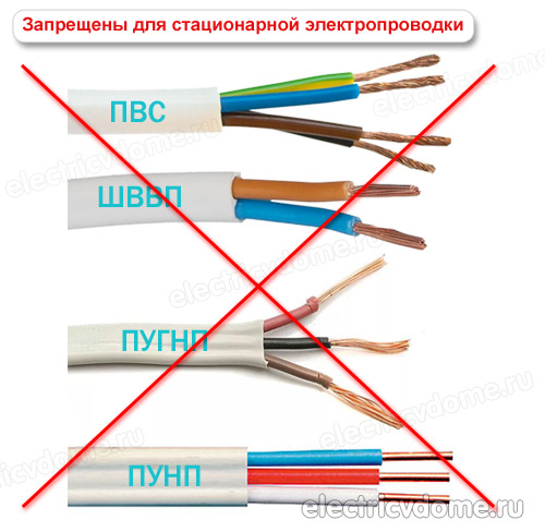 Dans les pièces très humides, la pose du câble VVG est également autorisée. Le câble le moins cher pour le câblage interne est le câble PUNP avec isolation et gaine en PVC. La forme de la section transversale est plate, les âmes sont à un seul fil. L'inconvénient du câble PUNP est la faible qualité de l'isolation : lorsqu'il est chauffé, il perd ses propriétés de fonctionnement.