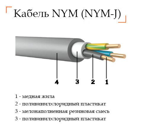 Mais le câble NYM est plus cher que VVGng-ls, car il est principalement utilisé pour connecter des boîtes de jonction au blindage du sol, des appareils électriques puissants (une ligne séparée est posée à ceux du blindage) et des blindages intérieurs, le cas échéant.