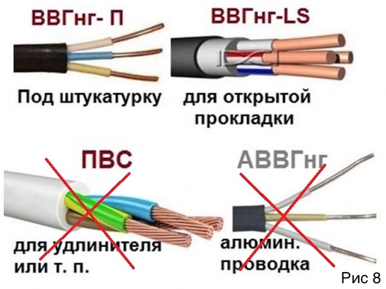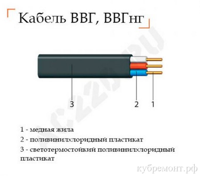- câble VVG (cuivre), AVVG (aluminium) - pour tirer le long des murs des maisons et dans le sol;