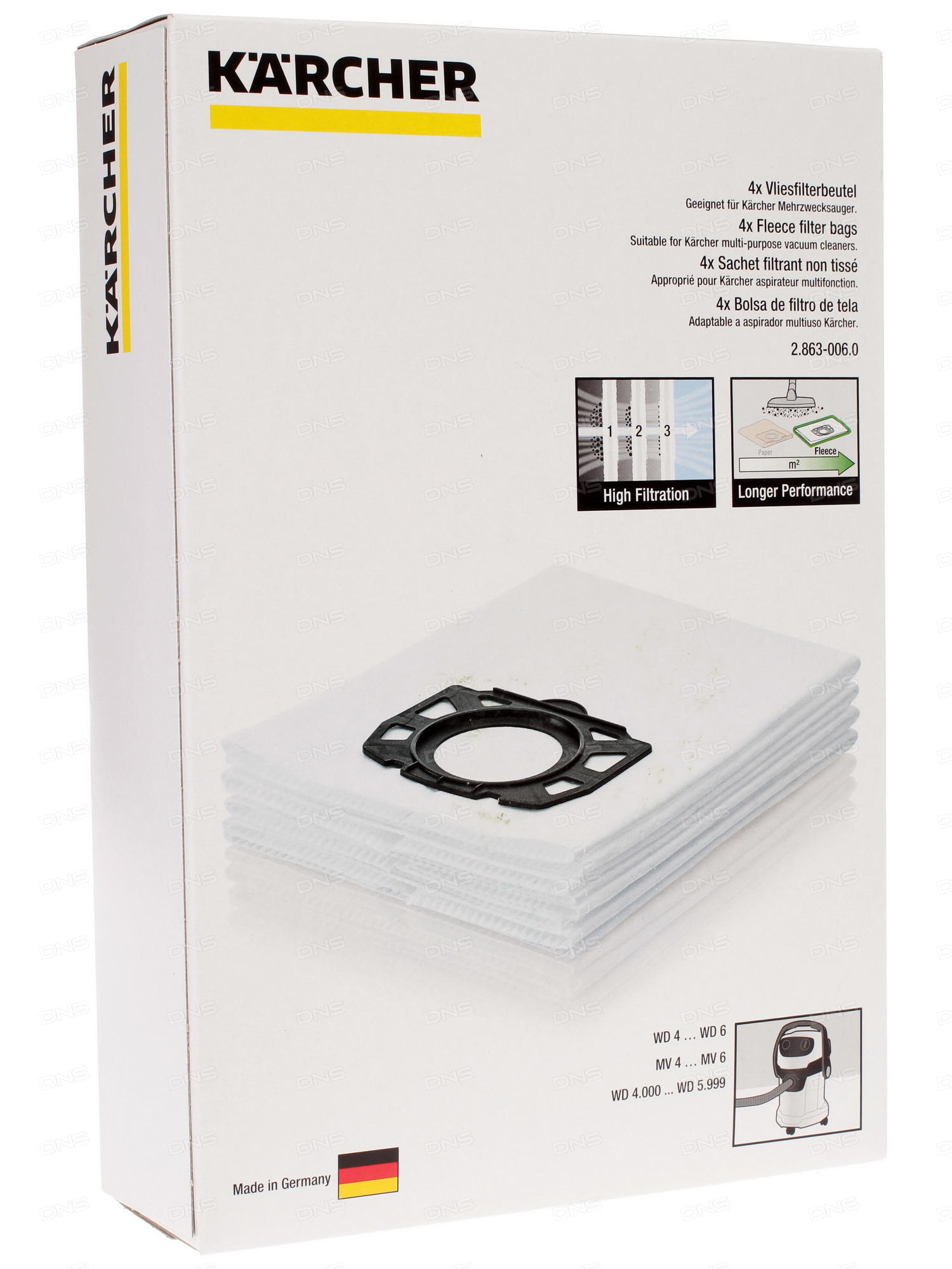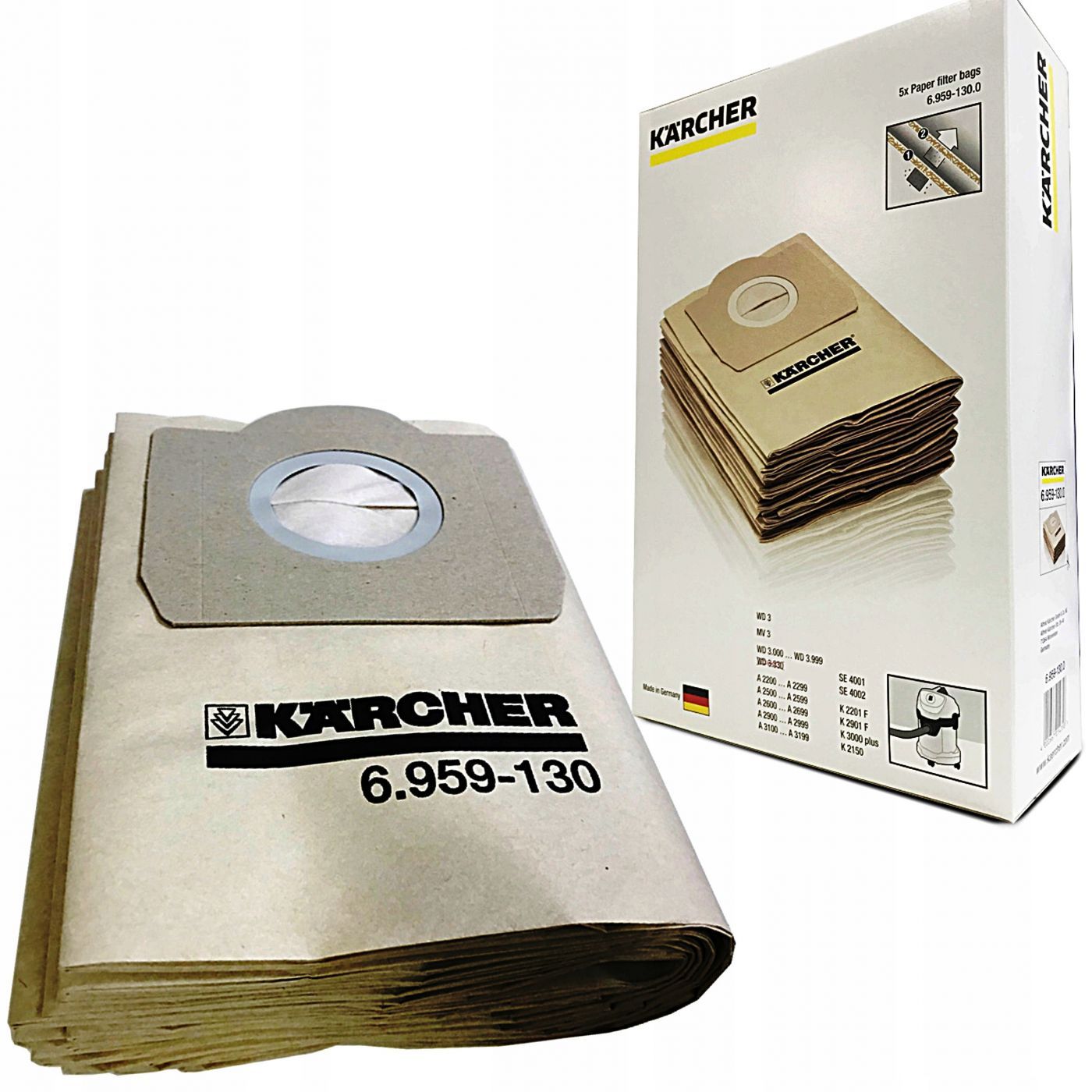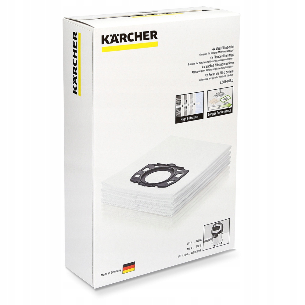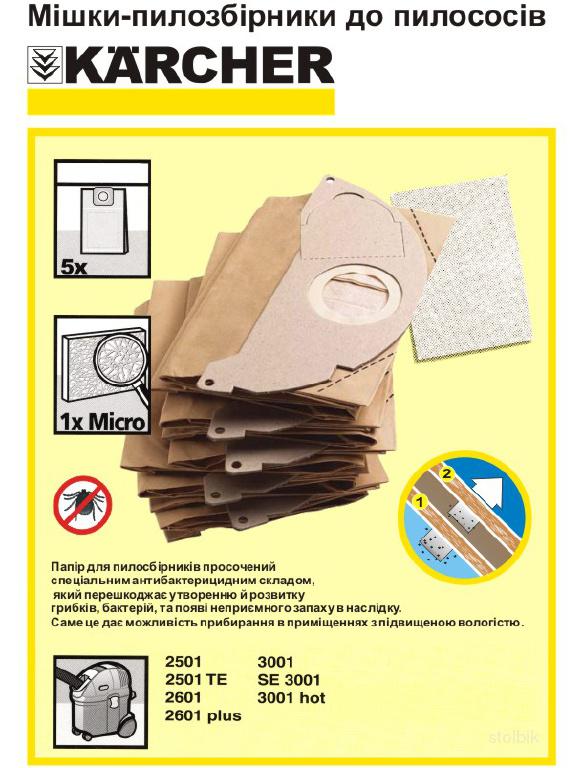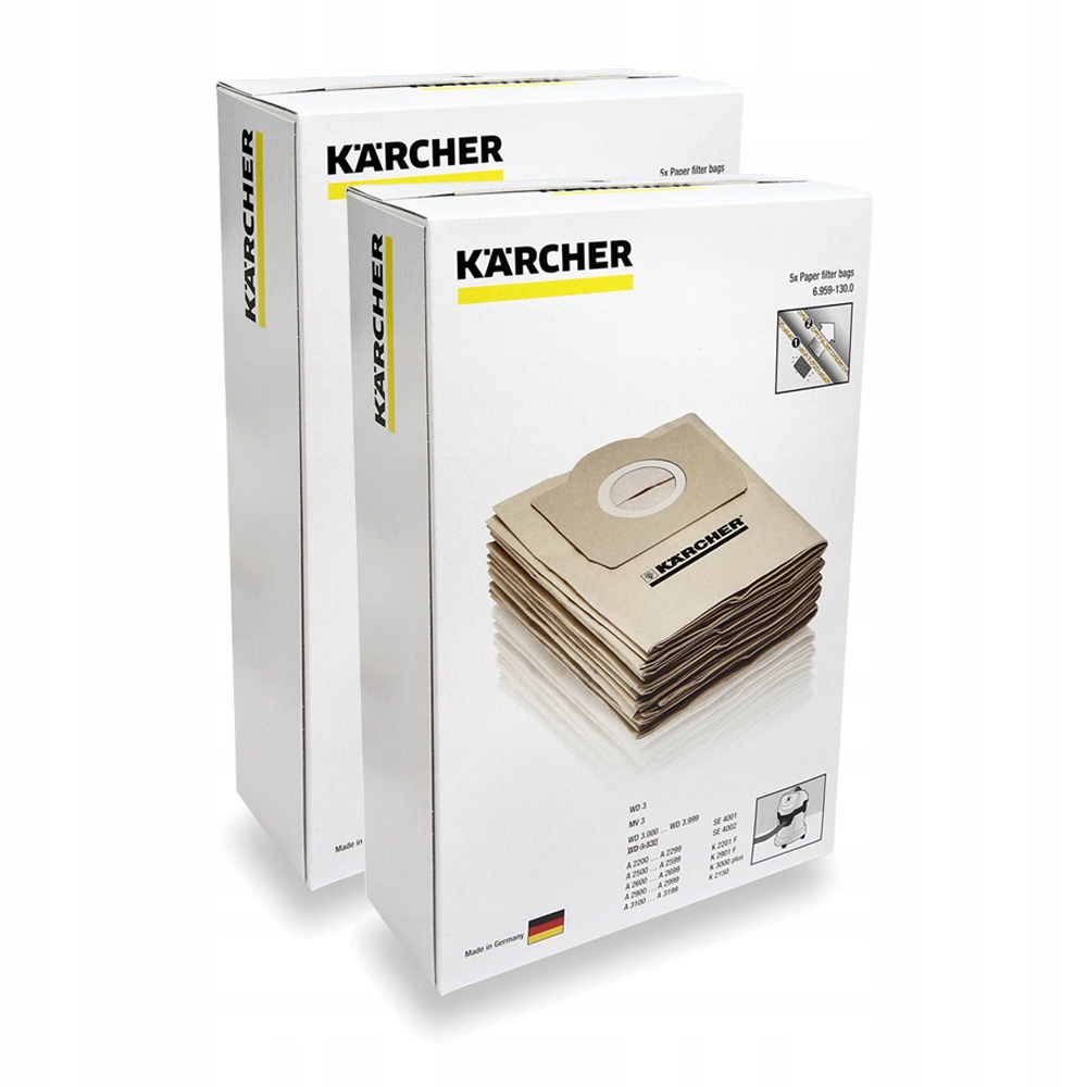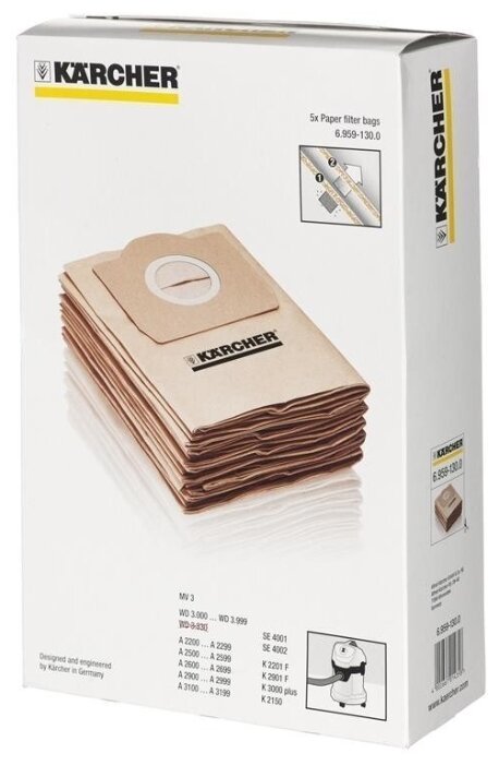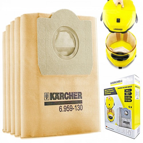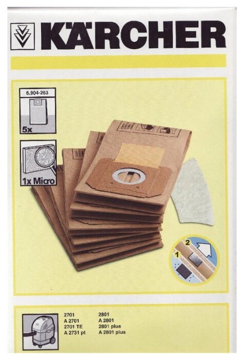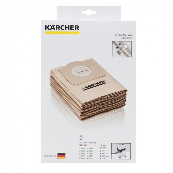 Les aspirateurs à sacs sont représentés par les modèles Karcher MV3 et Karcher NT361. Le modèle MV3 avec une consommation électrique de 1000 W dispose d'un bac à poussière jetable d'une capacité allant jusqu'à 17 litres. L'aspirateur avec une méthode de filtrage conventionnelle est conçu pour le nettoyage à sec et humide.
