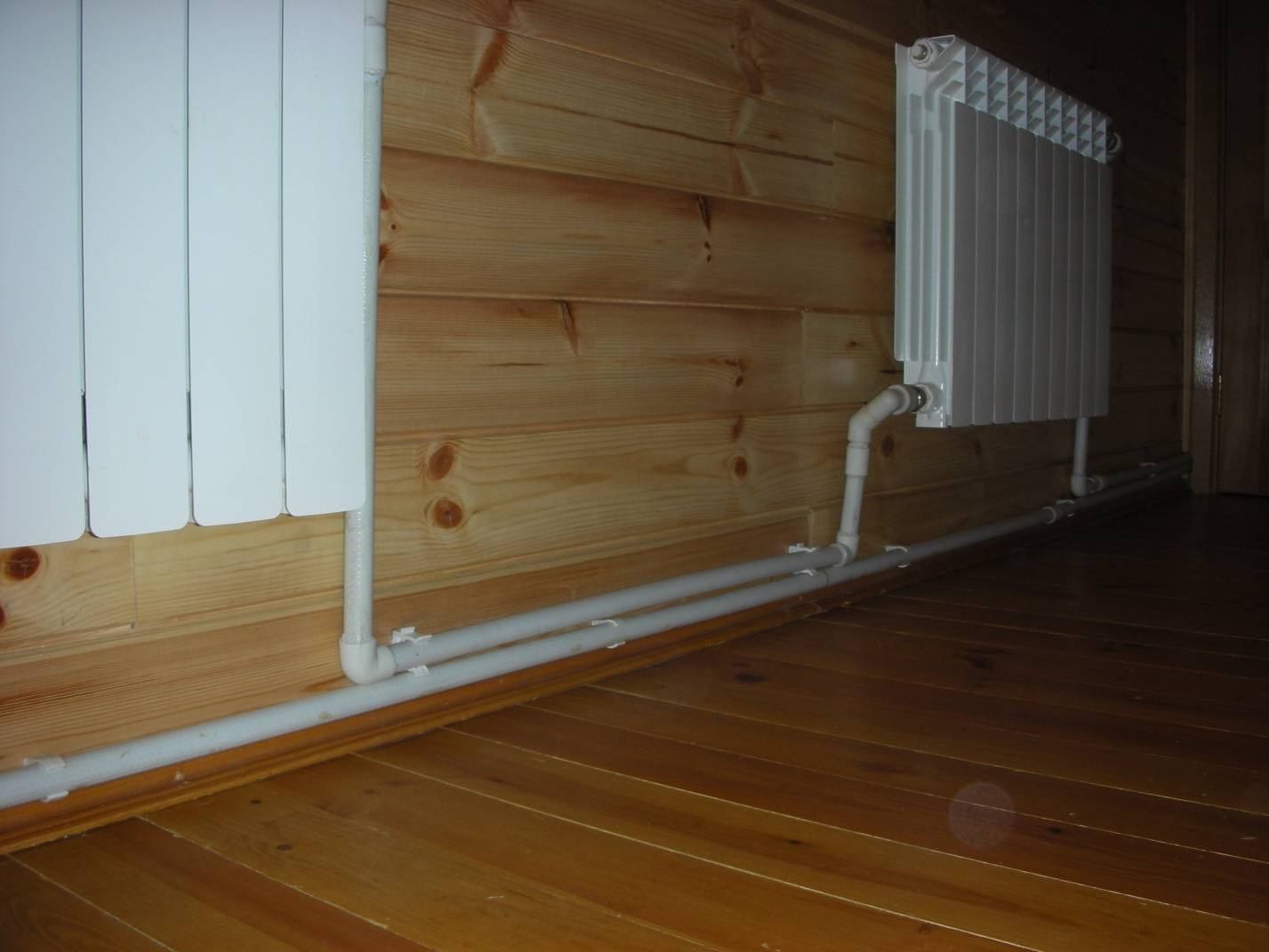 La première chose à traiter est la tuyauterie.Cela peut être qualifié de point important, car les habitants de leurs propres maisons au stade de leur construction sont rarement en mesure de calculer clairement et correctement les coûts qui seront engagés pour former le système de chauffage, ils doivent donc faire des économies sur divers sortes de matériaux. En règle générale, la méthode de raccordement des tuyaux peut être à un ou deux tuyaux. La première option est économique, dans laquelle un tuyau est posé à partir de la chaudière de chauffage le long du sol, traversant tous les murs et pièces et qui retourne à la chaudière. Les radiateurs doivent être installés au-dessus et la connexion sera effectuée à l'aide de tuyaux par le bas. En même temps, de l'eau chaude coule dans les tuyaux, remplissant complètement les batteries. Ensuite, l'eau descend et par un autre tuyau pénètre dans le tuyau. En fait, il existe une connexion en série des radiateurs en raison de la connexion inférieure. Mais il y a un inconvénient, car à la fin d'une telle connexion dans tous les radiateurs suivants, la température du caloporteur sera plus basse.