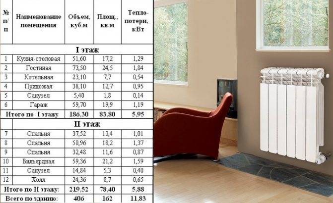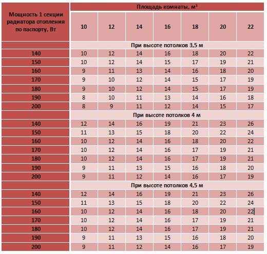 Chaque pièce séparée a sa propre superficie et son propre volume, et le calcul du nombre de sections installées dans celle-ci dépendra de ces paramètres.