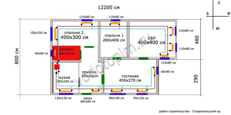 Ou augmentez le nombre total à 12 et installez les mêmes radiateurs sous toutes les fenêtres, 4 sections chacune. Je choisis la deuxième option, car deux sections de près de trois mètres du mur oriental sont en quelque sorte modestes.