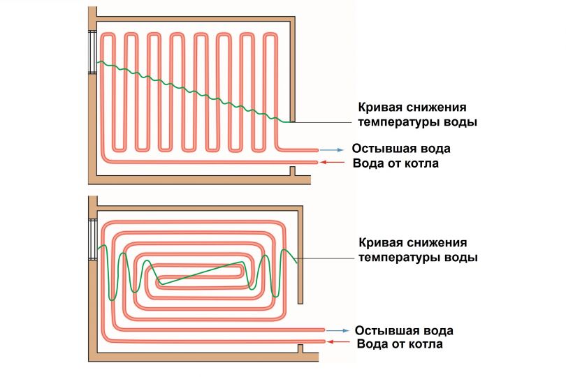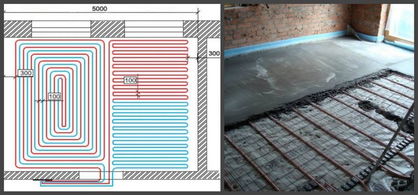 Un rôle tout aussi important est joué par la commodité du travail lors de l'installation des tuyaux. En règle générale, les tuyaux commencent à être posés sur le sol en spirale, mais entre les circuits adjacents, il y a un espace qui n'est pas chauffé. En conséquence, la chaleur ne se propage pas dans tout le sol et les zones non chauffées restent. Les tuyaux sont posés dans cet espace sous la forme d'un serpent avec un pas minimum de 100 mm. Un tuyau de chauffage au sol de 16 mm peut atteindre une telle étape, mais pas un tuyau de 20 mm. De plus, il existe de nombreuses petites pièces, telles que de petits couloirs, des salles de bains, etc., dans lesquelles il est plus facile de poser un tuyau avec un serpent.