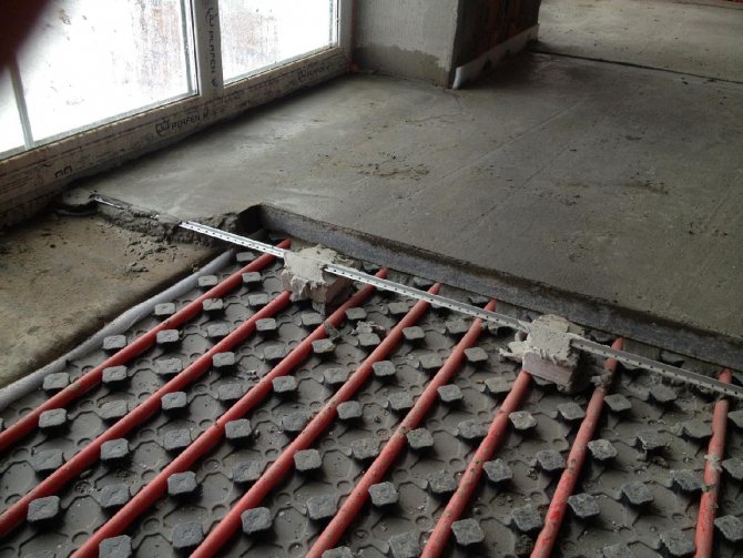 Troisièmement: la mise en service d'un sol chaud dans une chape n'est possible qu'après que le béton a acquis 100% de résistance. Cela prend au moins 28 jours. Avant cette période, il est impossible d'allumer le sol chaud.