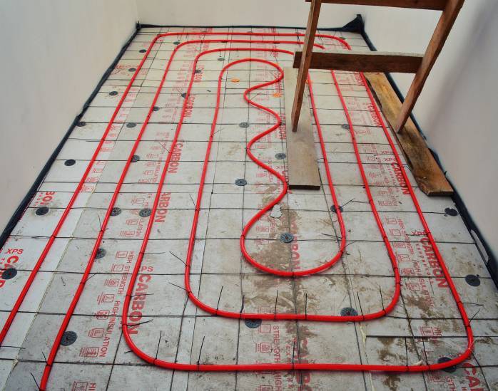Pose d'un plancher d'eau chaude