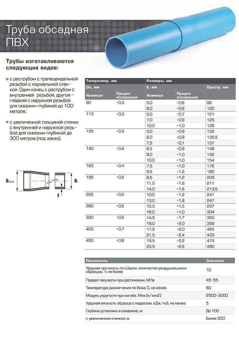 Le plus souvent, des tuyaux d'un diamètre de 90 et 125 mm sont utilisés, car la plupart des pompes de forage modernes sont produites pour cette taille.