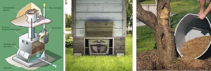 Dans une armoire sèche à tourbe, les déchets sont traités par des bactéries contenues dans la tourbe elle-même. Il y a un distributeur spécial ici, où les consommables sont versés. Si nécessaire, il couvrira uniformément les déchets. Il est conseillé d'installer une telle structure dans une pièce séparée ou une extension spéciale, car elle devra être équipée d'un tuyau d'échappement. Le mélange ici est dépensé de manière efficace et économique. Après traitement, les déchets ne deviennent pas toxiques, ils peuvent donc être ajoutés à l'humus ou au compost.