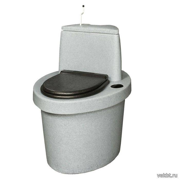 La taille de cet appareil est légèrement supérieure à la taille d'une cuvette de toilette standard. Il a deux réservoirs, dans le supérieur il y a de la tourbe, qui doit être ajoutée régulièrement. Il n'y a pas de chasse d'eau dans la conception. Les déchets, après être entrés dans le réservoir inférieur, sont recouverts d'une couche de tourbe provenant du réservoir inférieur. Cela se produit après avoir appuyé sur un levier spécial. Une partie des déchets s'évapore par ventilation et une partie est transformée en compost.Les déchets après le remplissage du réservoir inférieur peuvent être déchargés dans la fosse à compost à partir de palettes ou d'autres matériaux. En tant qu'engrais, ils ne peuvent être utilisés qu'après un an.