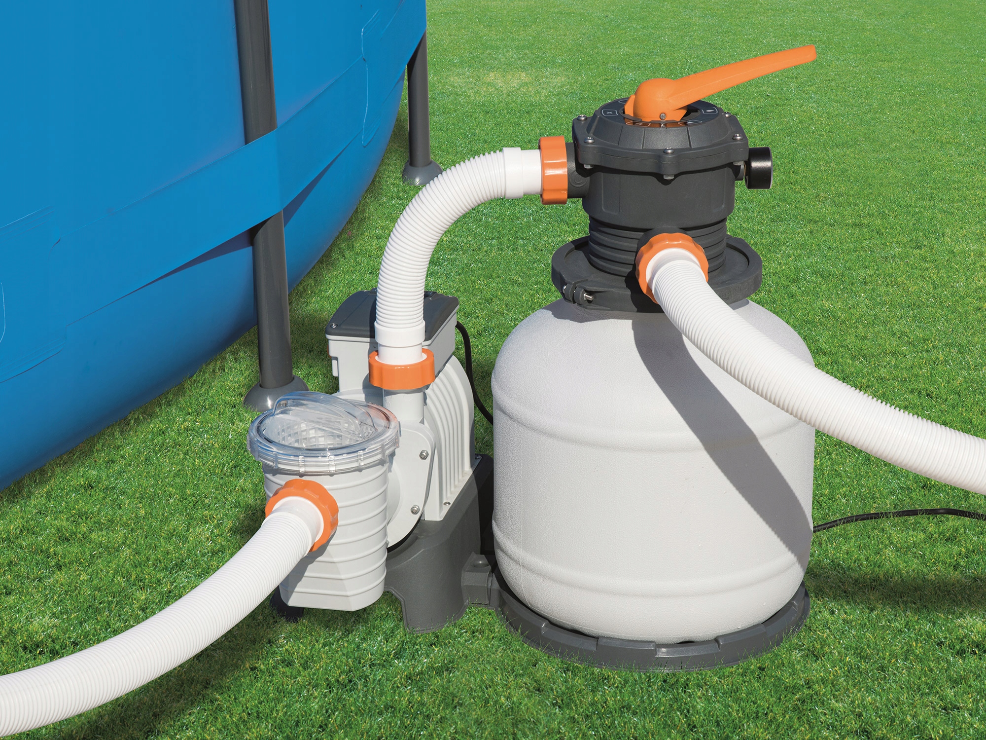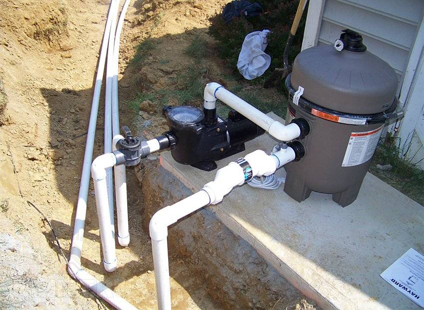 3. Raccordement du filtre à la pompe à l'aide de tuyaux (dans les systèmes de pompe à filtre, cela n'est pas nécessaire, le filtre et la pompe sont structurellement combinés).