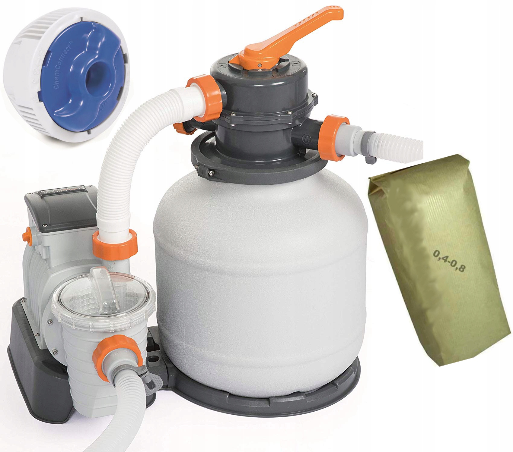 Certains appareils, comme ceux de type sable, sont équipés d'un réservoir impressionnant. L'élément filtrant - le sable - y est versé.