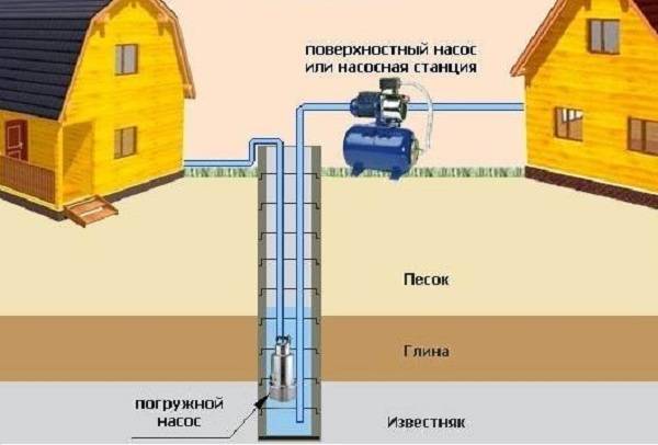 Quant aux pompes de surface, il est préférable de les installer si la hauteur de l'eau dans le puits ne dépasse pas 9 mètres. Il faut veiller à respecter ces normes afin de ne pas diminuer les performances de l'équipement. Il y a aussi une limite de température de l'eau. Fondamentalement, il devrait atteindre au moins 4 degrés Celsius. Il en résulte que la pompe de surface est le plus souvent incluse dans la composition de l'approvisionnement en eau d'été, et non d'hiver, du chalet d'été. Ou vous pouvez déjà installer un tel système dans le sous-sol de la maison.Mais avec une telle installation, le puits doit être situé à une distance d'environ 12 mètres du bâtiment, qui sera alimenté en eau.