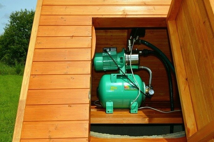 Selon que vous vivez dans cette pièce toute l'année ou que vous l'utilisez comme chalet d'été pour la saison, la méthode de pose de la partie extérieure de l'alimentation en eau dépend. Si vous venez à la maison uniquement pendant la saison, vous pouvez choisir en toute sécurité le schéma de canalisation d'été. Dans ce cas, il vaut mieux installer une pompe de surface. Les experts recommandent de le monter sous un auvent pour le protéger de la pluie et du soleil - afin qu'il ne soit jamais mouillé. Les tuyaux eux-mêmes, allant de la pompe au bâtiment, peuvent être posés très facilement en creusant de petites tranchées et en plaçant les tuyaux à la profondeur optimale.