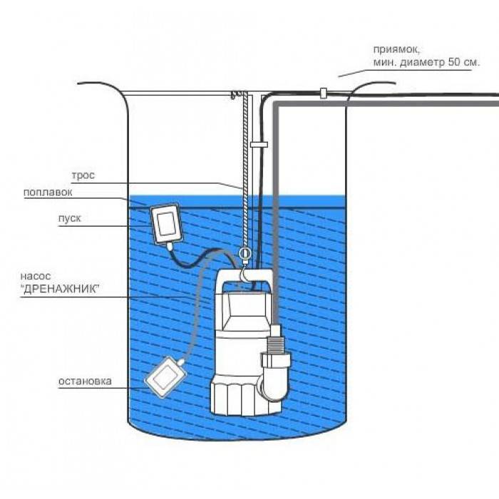 Les experts recommandent également de prêter attention à la présence d'un flotteur qui coupera l'alimentation de la pompe lorsqu'un niveau d'eau critique est atteint.