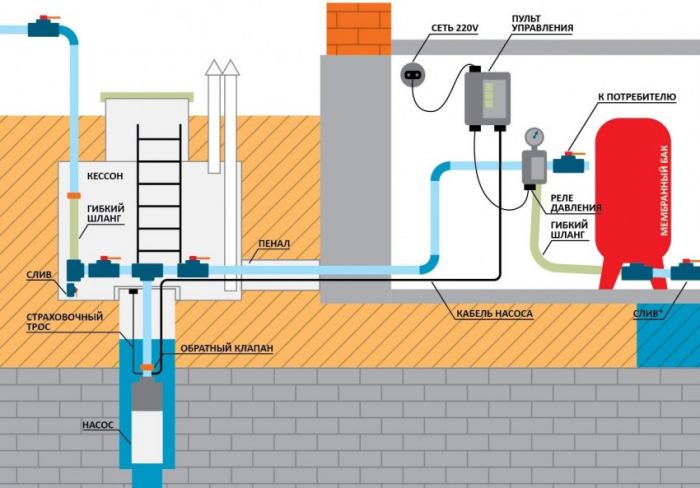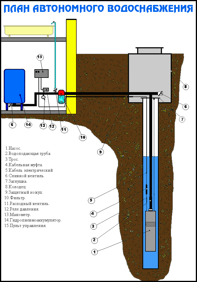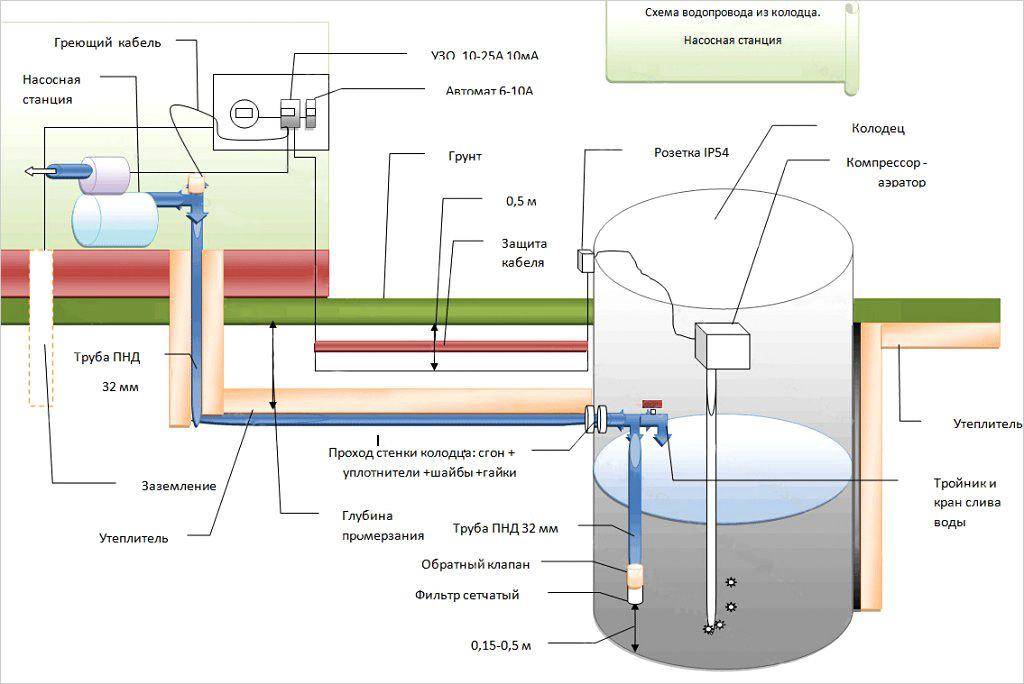 Pour alimenter la maison en eau potable, vous devrez creuser un puits assez profond. Contrairement à un puits, un puits nécessite un nettoyage régulier, qui doit être fait une ou deux fois par an. Pour améliorer la qualité de l'eau du puits, il est recommandé d'installer un système de filtration fiable.