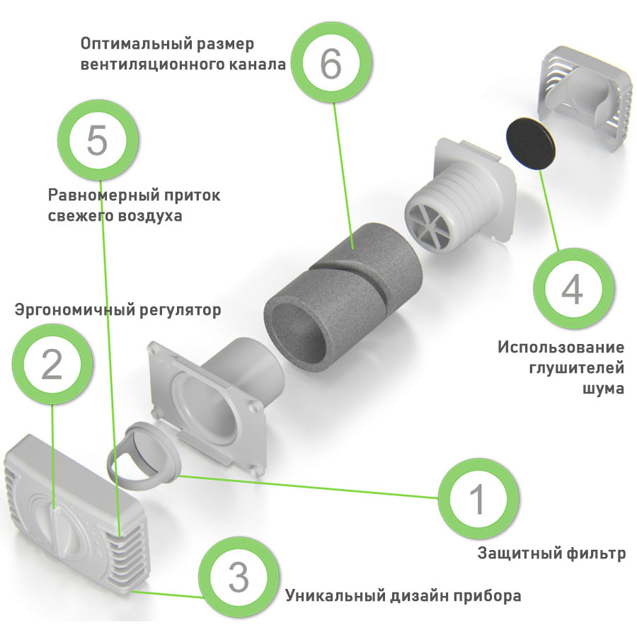Lors de l'installation d'une vanne d'admission, il est important de comprendre que la création d'un afflux d'air ne résoudra pas les problèmes de ventilation. Pour assurer une atmosphère saine dans la pièce, il est nécessaire d'établir le fonctionnement de la hotte, de créer les conditions de circulation des flux d'air entre les pièces