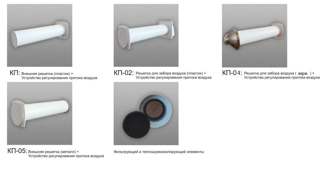 - Filtre d'évent mural. Le matériau est situé dans la tête, ne permet pas à la poussière, au pollen et à d'autres allergènes de pénétrer dans l'appartement. Selon le modèle, la marque, différentes charges sont utilisées.