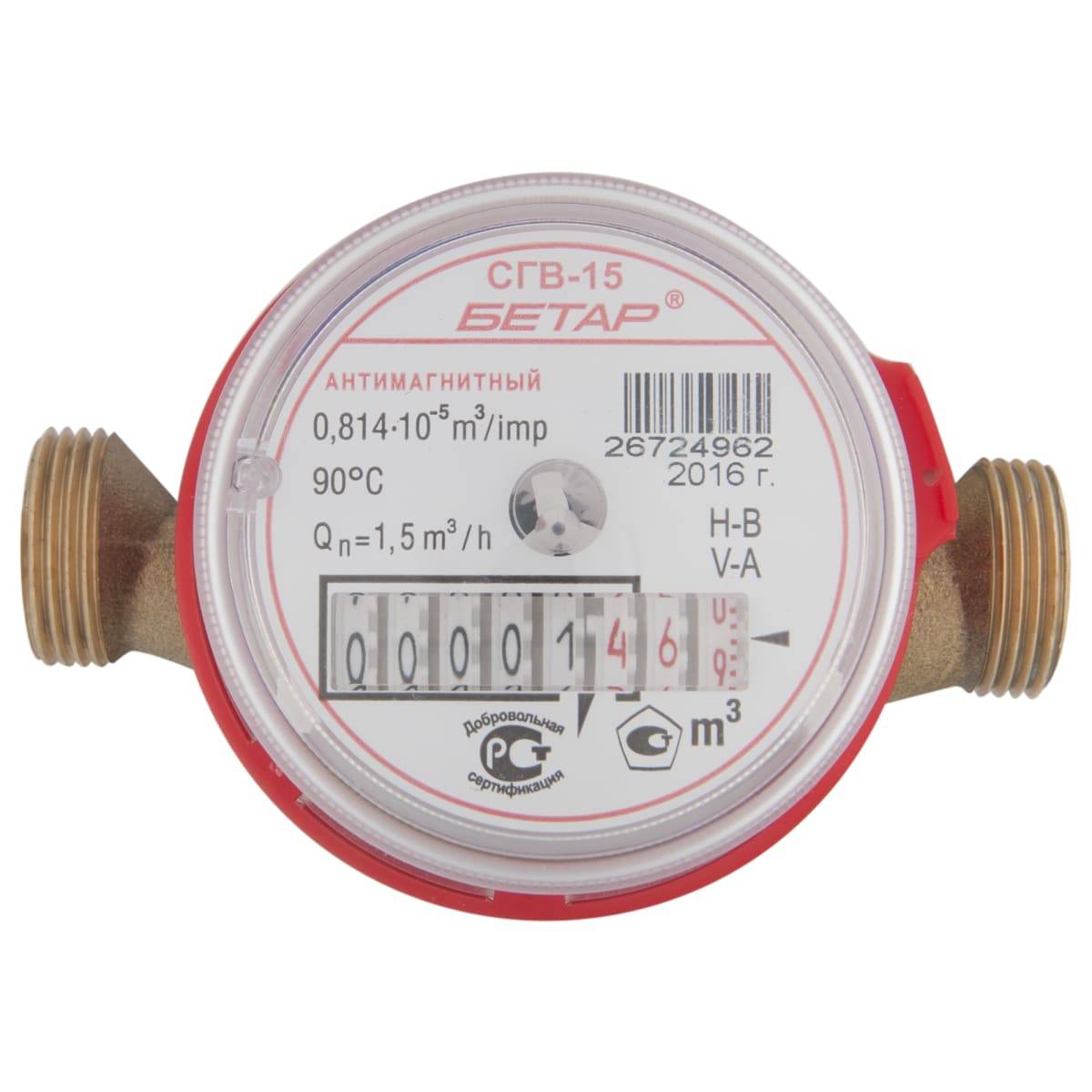 Il s'agit d'un produit en laiton, de type raccords filetés, conçu pour un diamètre de trois quarts de pouce. L'intervalle d'étalonnage de cet équipement est de quatre ans pour l'eau chaude et de six ans pour l'eau froide. La durée de vie moyenne de ces équipements est de 12 ans. Le produit est universel, respectivement, il peut être installé sur l'eau chaude et froide. Du côté de l'entrée, ce compteur a une maille spéciale qui peut piéger les gros contaminants - vous n'avez pas à l'acheter séparément. Malheureusement, les joints d'étanchéité ne sont pas fournis avec cet équipement - ils devront être achetés en plus.