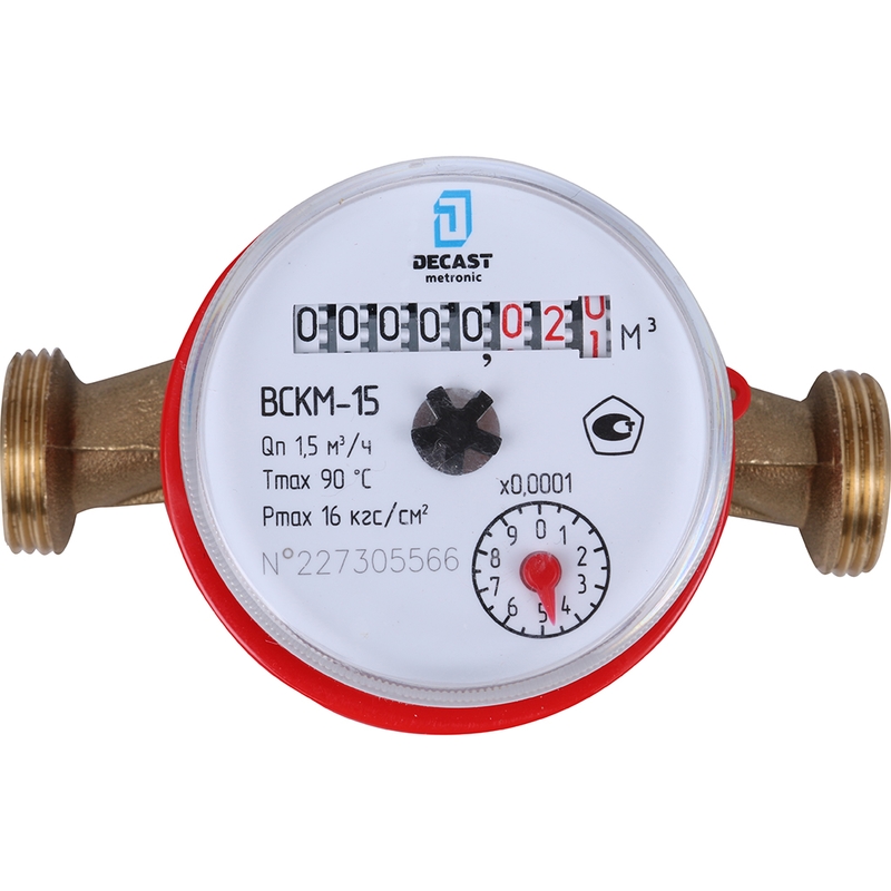 le débit d'eau admissible est le volume d'eau maximal par unité de temps que le compteur peut traverser lui-même, tout en garantissant une précision de mesure suffisante. Pour les canalisations de diamètre 15 mm, les compteurs sont produits avec un débit nominal de 1,5 m3/h et un débit maximum de 3 m3/h, ce qui est largement suffisant ;