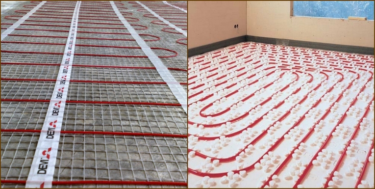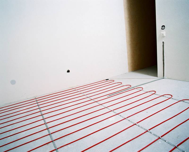Dans la salle de bain ou dans la cuisine, mieux vaut réaliser un sol chaud sous forme de tubes chauffants posés dans une chape béton. Avant la pose, la pièce est divisée en petites sections égales. Un tel écrasement assurera en outre l'uniformité de l'apport de chaleur à l'appartement et protégera contre d'éventuelles déformations du sol.
