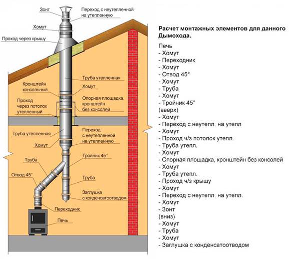 Nous avons déjà dit que la cheminée peut être connectée indépendamment. Pour ce faire, vous devez amener le tuyau à travers le toit ou directement dans le mur, puis le soulever à travers le canal rotatif. Afin d'améliorer la combustion dans la fournaise, installez d'abord un tuyau régulier, puis une cheminée sandwich. D'un tuyau ordinaire, il y a un fort rayonnement de chaleur. La température du tuyau n'est pas inférieure à la température de combustion. Pour réduire la chaleur, le tuyau est équipé d'un treillis en brique.Ainsi, après la fin de la combustion, le tuyau chauffe longtemps la pièce et la température initiale est tout à fait acceptable.