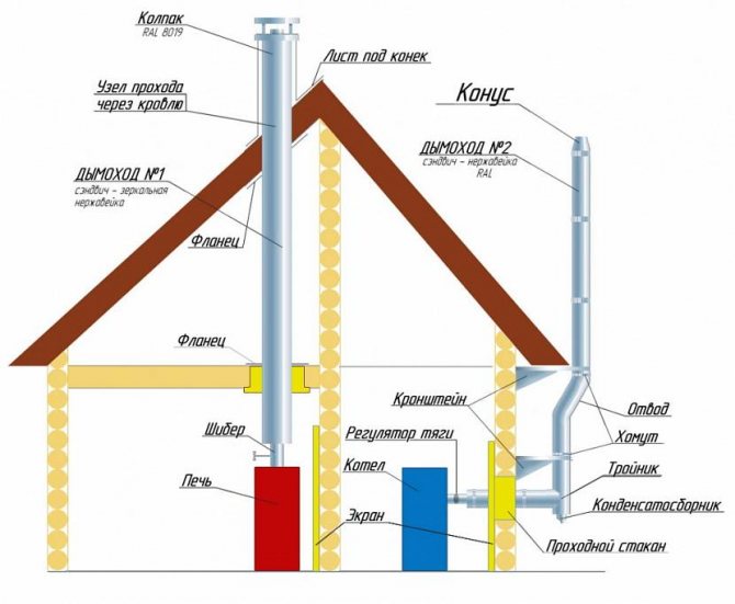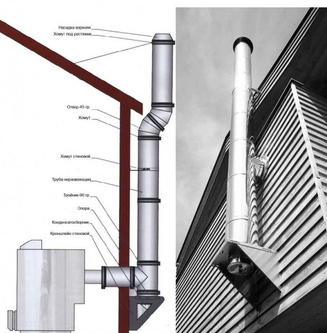 Si une cheminée en acier inoxydable est montée à l'extérieur, elle nécessite une isolation supplémentaire. Sinon, en raison d'une importante perte de chaleur pendant la saison froide, une grande quantité de condensat se formera.